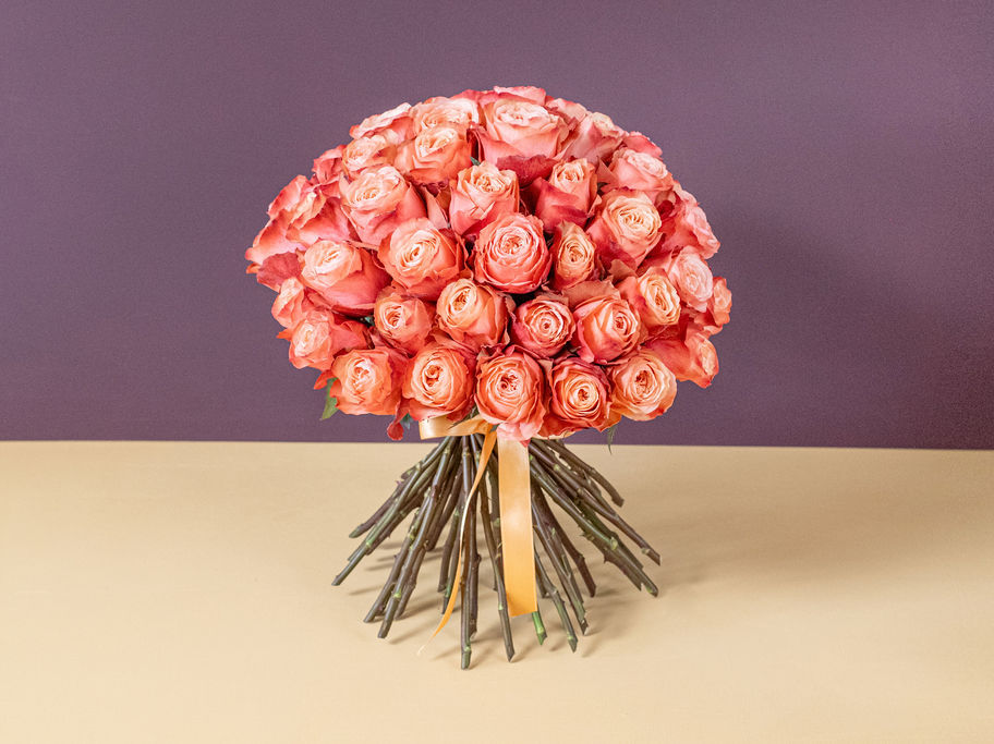 Introducing the Kalha Rose Dome, a beautiful hand-tied bouquet that will capture the essence of your free spirit! Featuring the stunning bicolor Kalha rose, this dome is the perfect way to express your love for life. With its orange and pink undertones, this rose can be used in any floral arrangement or design to bring color and vibrancy to any occasion. Whether you're looking for a gift for someone special or simply want to treat yourself, the Kalha Rose Dome is sure to impress