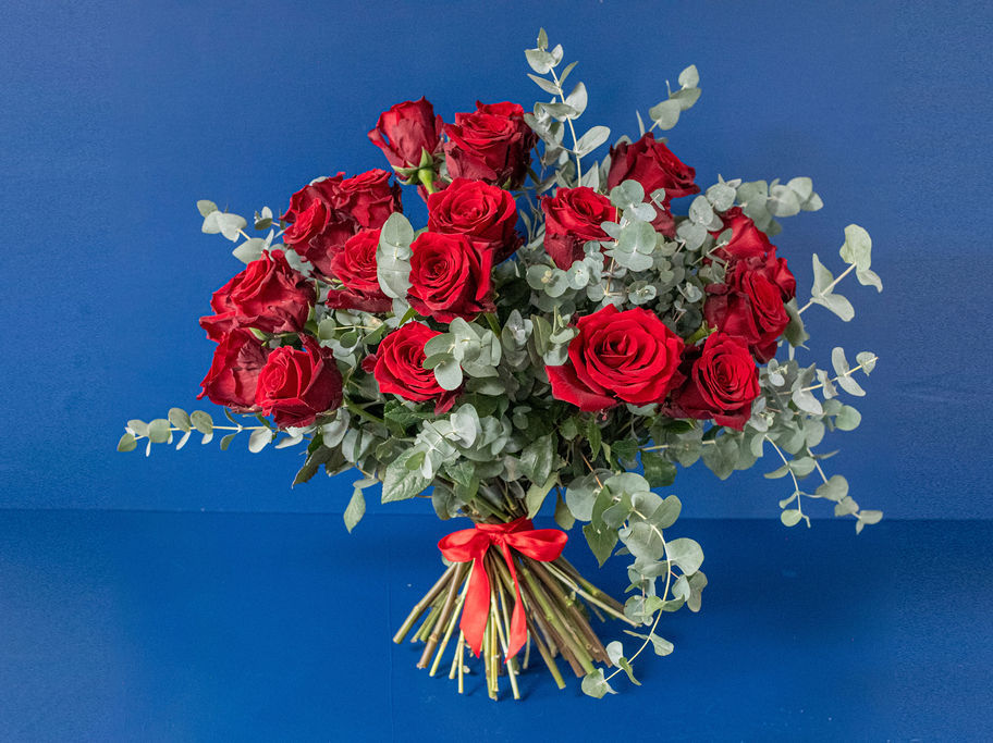 This gorgeous LOVE- Red Explorer Roses & Eucalyptus bouquet is the perfect gift for your special someone. Hand-tied using only the best red Explorer roses and fragrant eucalyptus, this bouquet is sure to make a statement. The striking combination of deep red roses and fresh eucalyptus will symbolize your deep and enduring love for your partner. Each bouquet is carefully arranged by our skilled florists to ensure a stunning and long-lasting arrangement. Show your love with this timeless and elegant bouquet that will surely make your Valentine's Day unforgettable.
